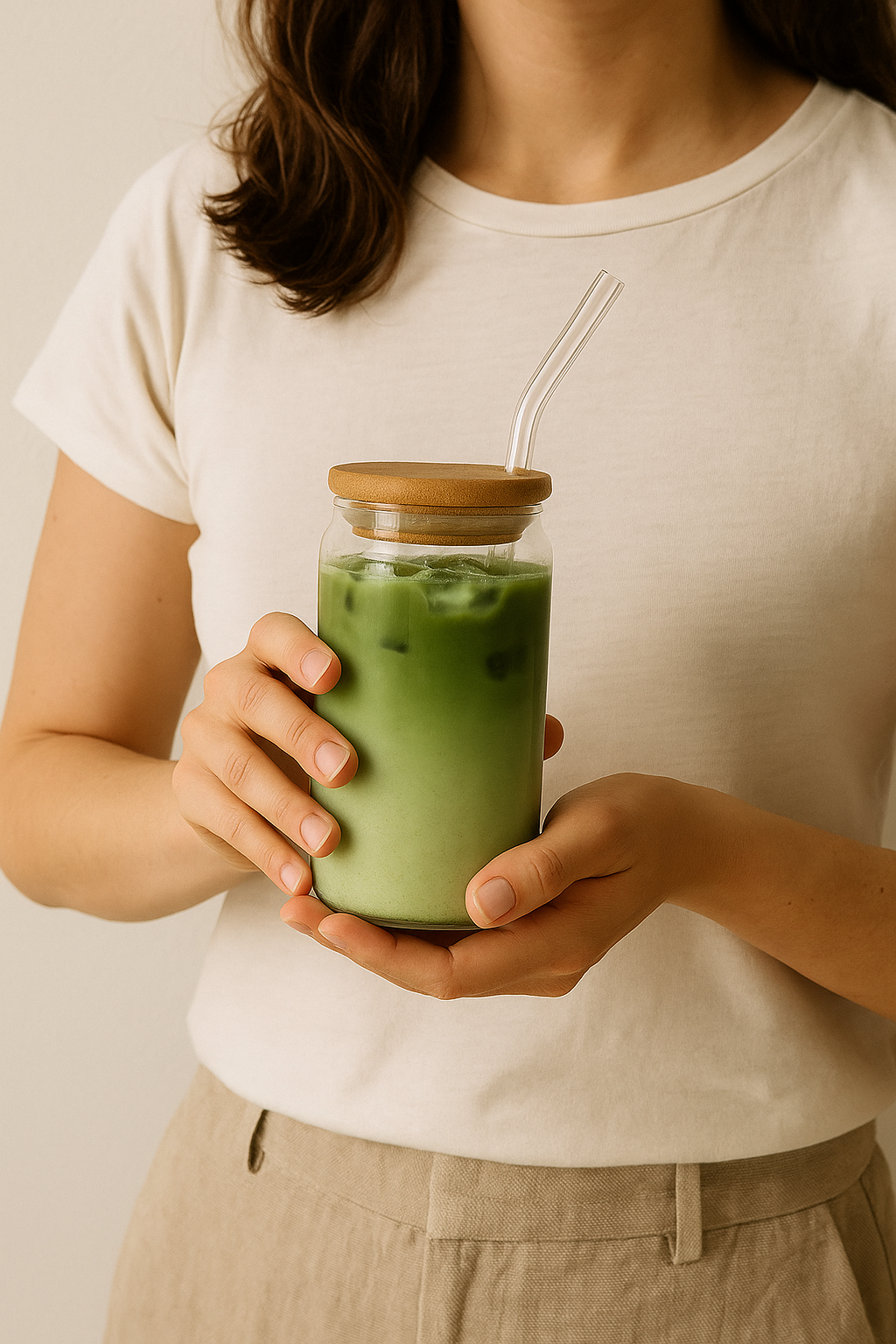 Este vaso de vidrio transparente con asa cuadrada y tapa de bambú es el must-have de cualquier cocina con estilo. Ideal para tus smoothies, cafés fríos, matcha o agua con frutas.Acompañado de una cañita de vidrio este vaso es perfecto para quienes buscan que todas sus bebidas tengan ese toque aesthetic.